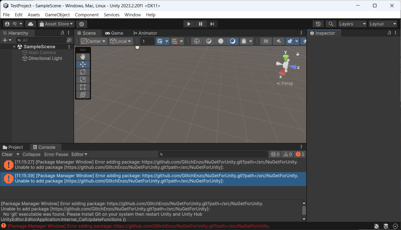 - 유니티 프로젝트에서 Window > Package Manager > + > Install package from git URL... > https://github.com/GlitchEnzo/NuGetForUnity.git?path=/src/NuGetForUnity 추가