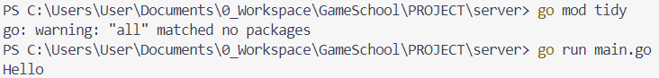 - 터미널에서 실행한 결과 (go run '파일이름')