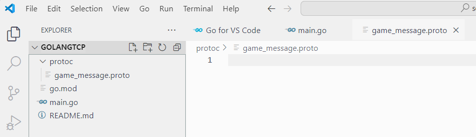 - 마우스 오른쪽 버튼 > New File... > 'game_message.proto' 생성