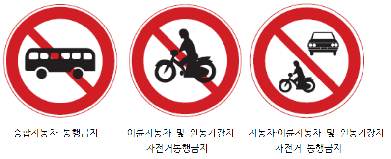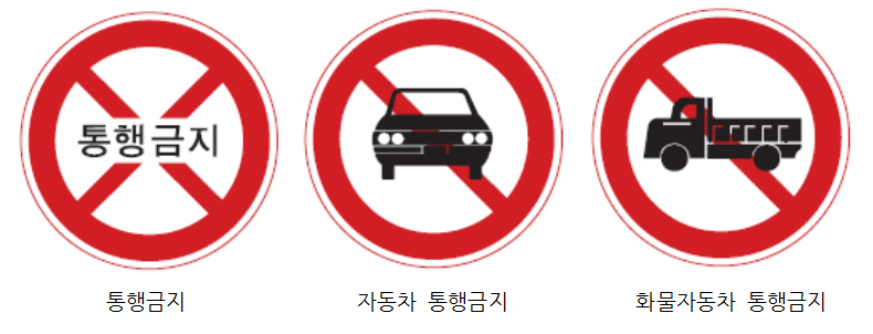 도로교통의 안전을 지키기 위해 제한 또는 금지되는 규제를 하는 경우 이를 도로 이용자에게 알리기 위한 표지이다.