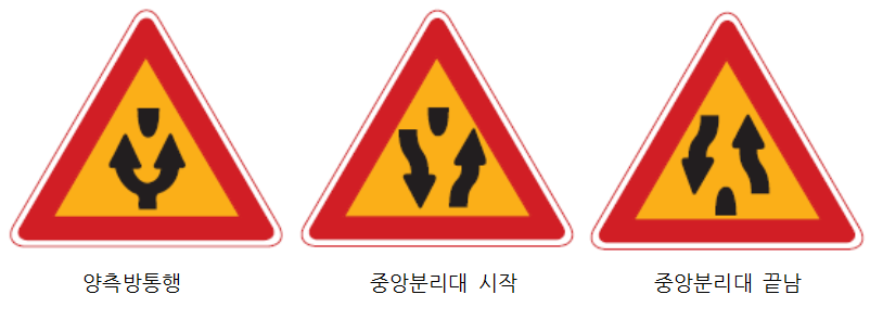 도로 주변에 위험물이 있거나 도로 상태가 위험할 경우 도로 이용자가 미리 안전조치를 취할 수 있도록 알려주는 표지이다.
