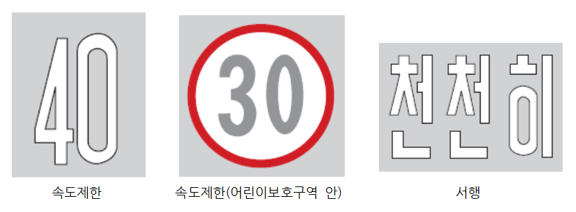 주의, 규제, 지시 등의 내용을 노면에 기호, 문자, 선으로 표시해 도로 이용자에게 알리기 위한 표지이다.