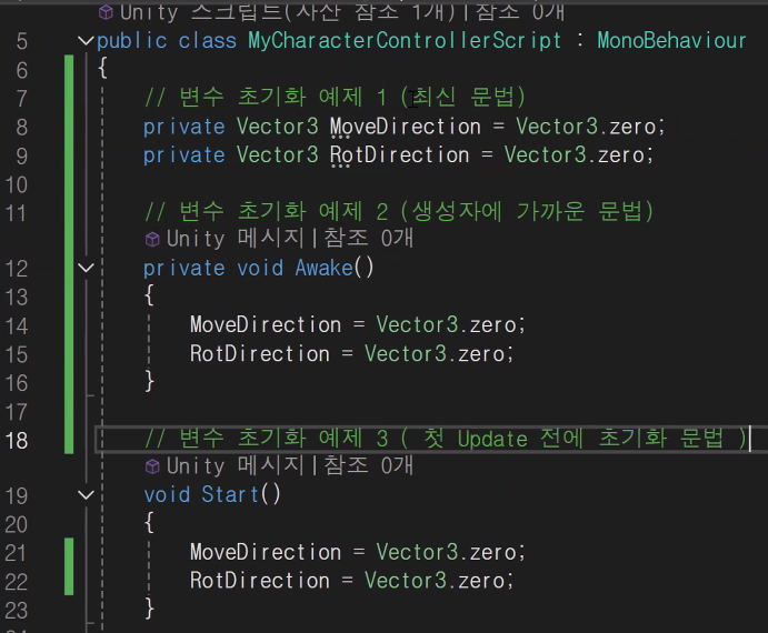 //유니티에서는 생성자를 사용하지 않는 대신 void Awake(){ } 를 사용한다.