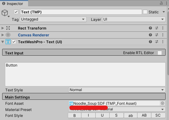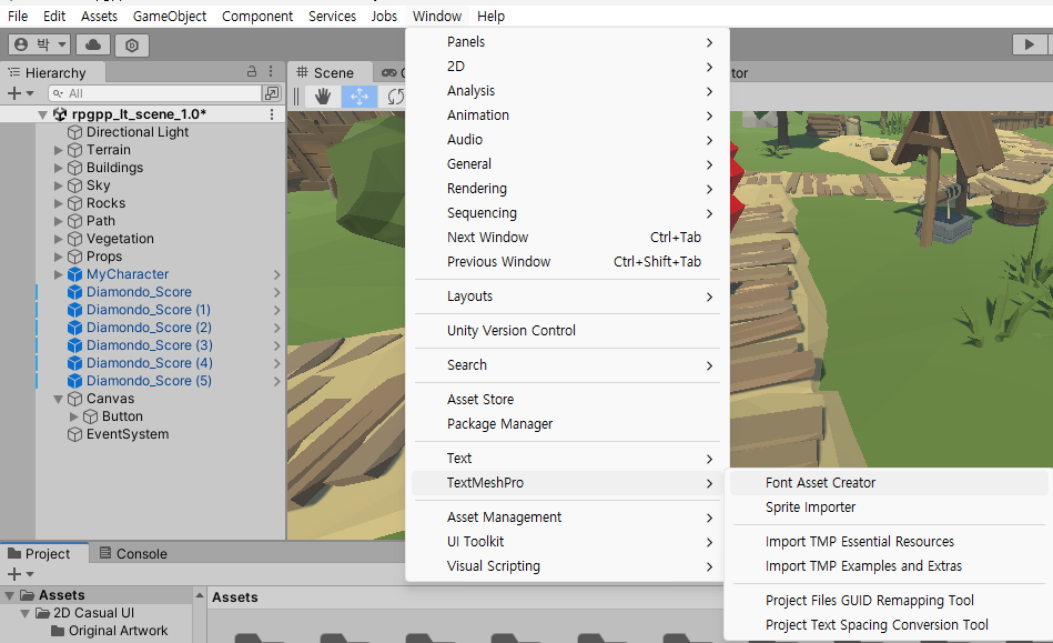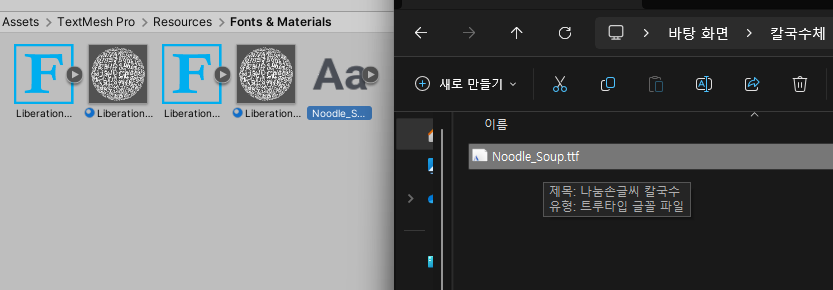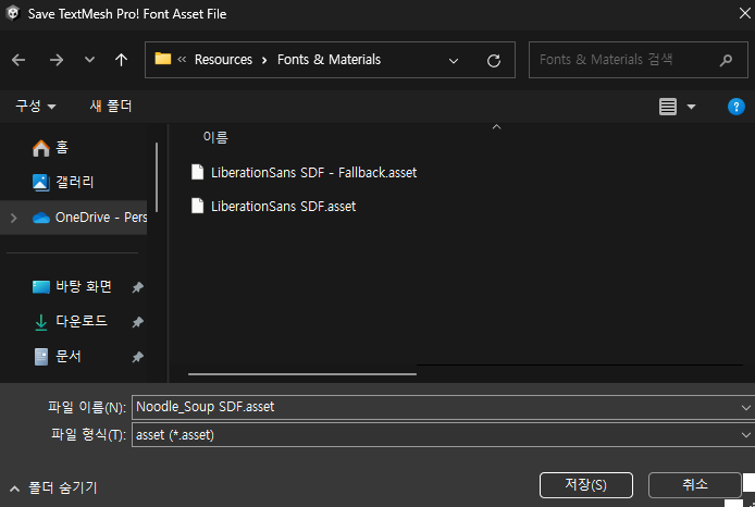 - 한글 폰트 사용을 위해 폰트 에셋 크리에이터를 이용하여 폰트에셋 생성.